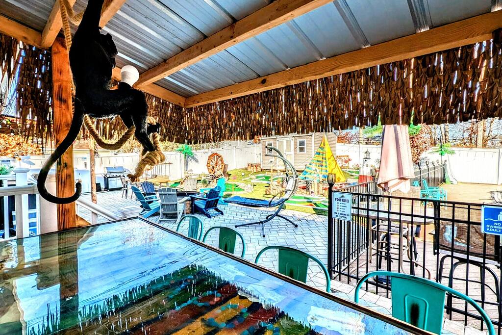 *📩 MESSAGE US TO ASK ABOUT LAST-MINUTE BOOKING DISCOUNTS!📩* -Pool open until October 31st! (Pool can be heated for a fee. See below for rates) Experience the only Airbnb on Long Island with a newly built 9-hole miniature golf course! Perfect for guests of all ages, this one-of-a-kind amenity provides hours of fun and relaxation right on the property. Whether you're up for some friendly competition or just a casual afternoon of putting, this course will add a memorable touch to your stay. Why Leave Long Island When You Can Feel Like You're on Vacation Here? One of our repeat guests put it perfectly: “It's like having your very own private resort all to yourself” If you’re searching for the perfect spot to kick back, relax, have fun, and feel right at home, this is the place for you! But don’t just take our word for it...read through our guest reviews to see what others have to say about the unique vibez of our home. (Even our one lonely 4-star review had nothing but good things to say 😂) **House Highlights** - Fully functional smart home, powered by Alexa. Control lights, TVs, even the kitchen sink, and more with just your voice. - Social media worthy Angel Wing Mural & Golden Throne Chair...perfect for photos (don't forget to tag us!) - TVS in every room, including a 86-inch 4K Smart TV in the living room above the electric fireplace...ideal for game days or cozy nights in and 2 more outside by the lounge and hotub. - Amenities galore! **Backyard Oasis (Tropical Vibez)** - 9-Hole Mini Golf Course - Heated Pool (Available for an additional fee) - 6-seater Hot Tub with a 55” TV - Outdoor Lounge Area with lounge chairs, a lighted palm tree, and a 75” TV - BBQ Grill (gas) with an outdoor dining table (seats 7) - Firepit (Free firewood included to start 1 good fire!) -Outdoor shower ***Bedrooms (Coastal Vibez)*** **Master Bedroom (Sleeps 2)** - King-size bed with a 12” Zinus memory foam mattress - 2 firmer memory foam pillows + 2 softer down-filled pillows - 65-inch 4K Smart TV - Dedicated workstation with desk and chair - Alexa speaker, full-length mirror, robes, and a security safe - Blackout curtains for a restful night **Starfish Room (Sleeps 2)** - Queen-size bed with a 12” Zinus memory foam mattress - 55-inch 4K Smart TV - Dedicated workstation with desk and chair - Alexa speaker, robes, and full-length mirror *The Lounge (Sleeps 2)* - Trundle bed with two twin-size 8” Zinus memory foam mattresses - 55-inch 4K Smart TV - Dedicated workstation with desk and chair - Alexa speaker, robes, and full-length mirror *Ultra-Modern Kitchen* -Equipped with Samsung Smart Appliances -Coffee Station: Includes a Keurig, drip coffee maker, and French press, along with a variety of regular and decaf coffee pods, ground coffee, teas, and hot chocolate. We also provide creamers, honey, and sugar. -Nespresso Machine with complimentary pods Stocked with every utensil imaginable to help you create the perfect meal -Premium HexClad Cookware for a superior cooking experience -A full selection of spices to suit every recipe **Dining Room / Game Room** - Large dining table that doubles as a pool table and ping-pong table - Pac-Man arcade game - NBA Jam arcade game - Street Fighter arcade game - Hook & Ring Toss Game - Cornhole - Darts - Golf Pool & Battleput Golf (The beer pong of golf!) - Storage closet packed with **board games** and so much more! **Additional Fun Amenities - Free firewood and a complimentary s’mores kit for the firepit - Massage Chair for ultimate relaxation - Smart TVs in every room, including the outdoor lounge and hot tub area - Free Hulu w/ Live TV, Disney+, Netflix, HBO Max, and Amazon Prime Video **Smart Home Features** Control lights, TVs, temperature, and even the kitchen sink with your voice! Just ask **Alexa** to: - Pour exactly one cup or gallon of water - Adjust the thermostat - Lock and unlock the front door - Play your favorite music (Amazon Music Unlimited included) - Set reminders, alarms, or even play interactive games **(See the House Manual for full Alexa instructions.)** 📍 Nearby Attractions: 🏖 Beaches: Sunken Meadow Beach, Northport Beach, Callahan’s Beach 🌳 Hiking Trails: Caleb Smith State Park, Blydenburgh Park 🍷 Wineries: Whisper Vineyards, Del Vino, Loughlin Vineyards 🎰 Casino: Jake’s 58 🚜 Farms: Hoyt Farm, White Post Farms ⛳ TopGolf 🛍 Shopping: Tanger Outlets There’s also a local park 🏀⚾🎾 one block away with a playground, baseball field, basketball courts, and tennis courts (we provide 4 tennis rackets 🎾 with balls 🎾). **Central Long Island Location** - 45 minutes to NYC (40 miles) - 45 minutes to The Hamptons (50 miles) - 12 minutes to North Beaches (8 miles) - 18 minutes to the Fire Island Ferry (8 miles) **Airports** - MacArthur Airport: 20 minutes (11 miles) - JFK Airport: 40 minutes (37 miles) - LaGuardia Airport: 40 minutes (39 miles) **Universities** - Suffolk County Community College: 5 minutes (2 miles) - Stony Brook University: 30 minutes (12 miles) **Our Mission at THE GOOD VIBEZ HOUSE** We want our guests to have everything they need and more. It’s the little details that make the biggest difference, and we pride ourselves on creating an unforgettable experience. We pride ourselves on going above and beyond for all of our guests. Come stay with us and discover all the things you never knew Commack, Long Island, had to offer!