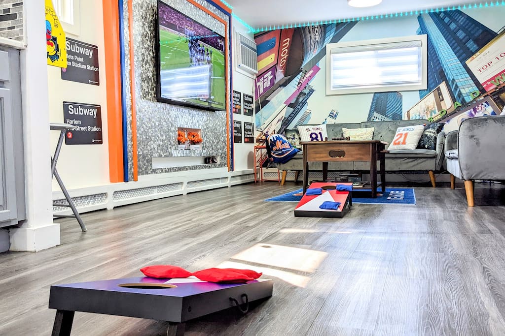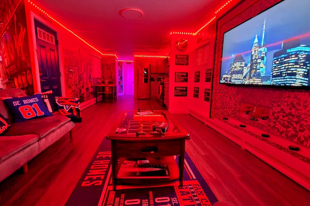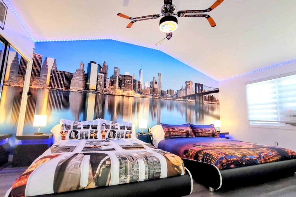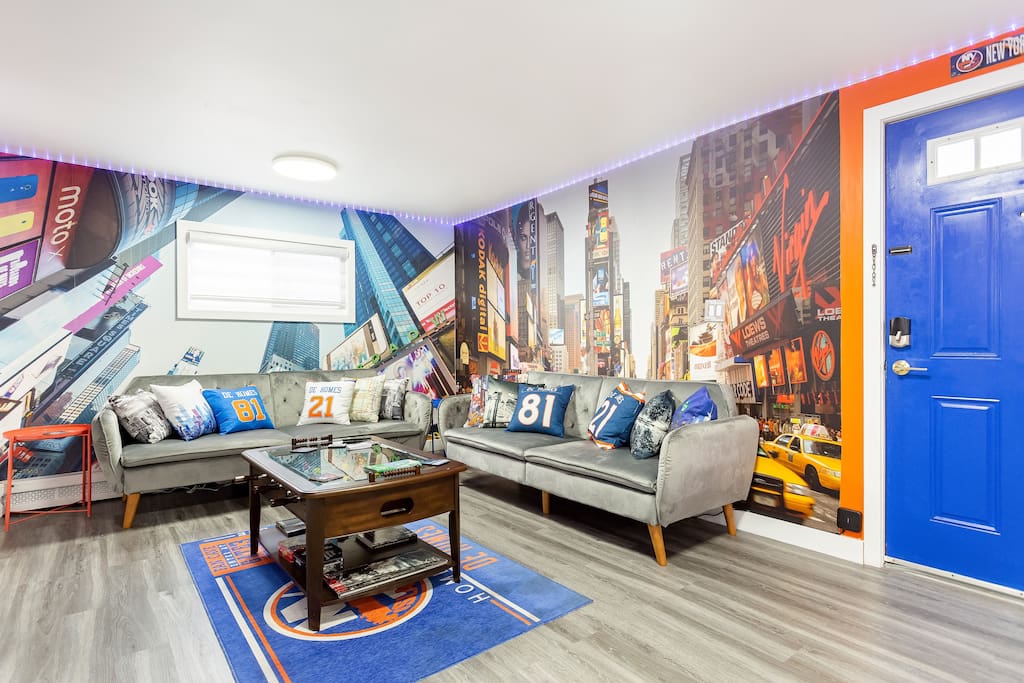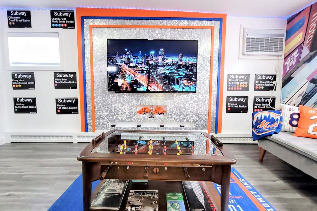 STAY. SOMEWHERE. DIFFERENT *This is an entire home! Owner does not live on premises! Complete privacy!* Experience the ultimate stay in this NYC Themed Smart Home! -5min walk to UBS Arena/Belmont -10min to JFK Airport -15min to LGA Airport -20min to Jones beach -10min to World Resort Casino -5min to Belmont Park Shopping Village Whether you're attending a game, concert, or exploring New York, this is the perfect spot. Labeled the cool, fun house...let us wow you and your family/friends!
