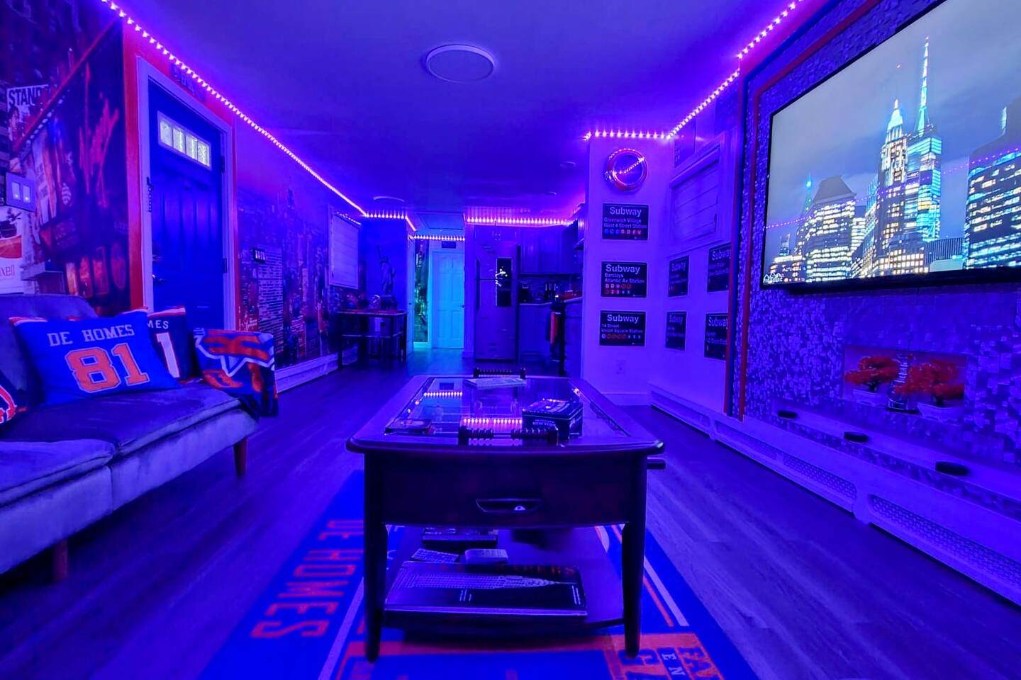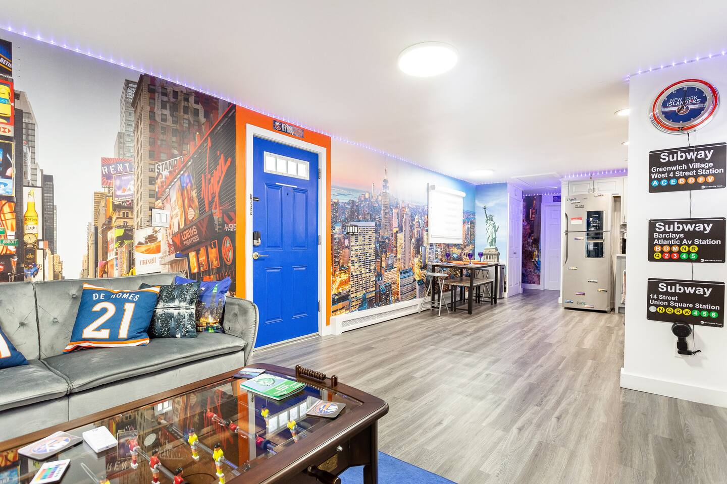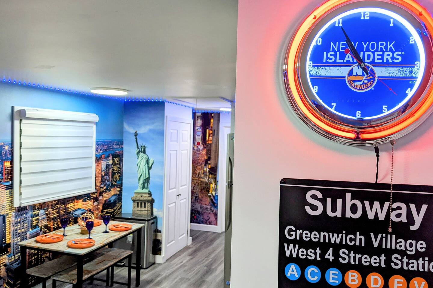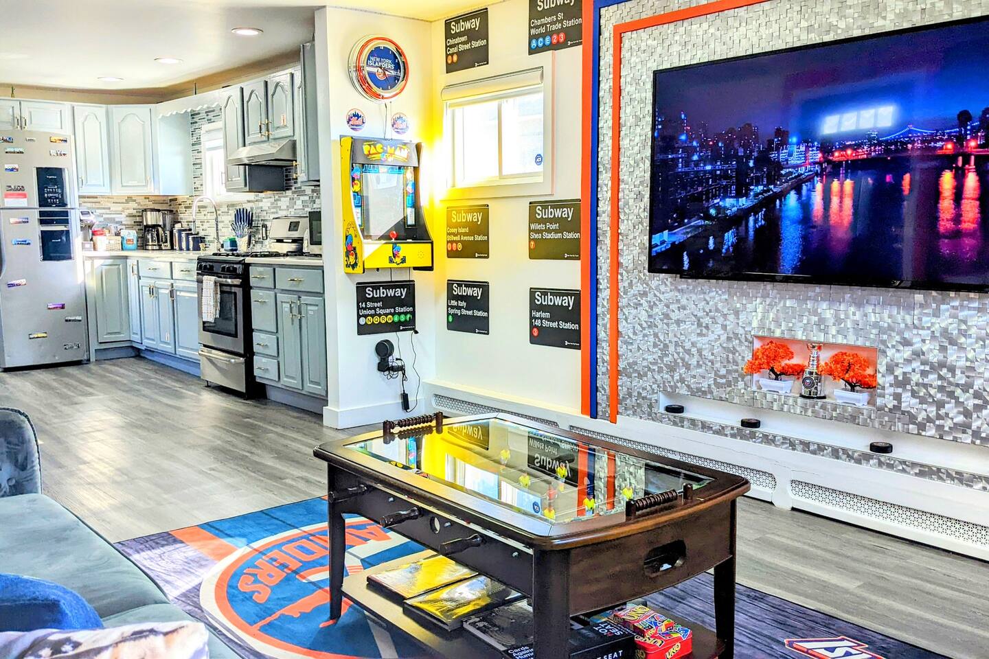 STAY. SOMEWHERE. DIFFERENT *This is an entire home! Owner does not live on premises! Complete privacy!* Experience the ultimate stay in this NYC Themed Smart Home! -5min walk to UBS Arena/Belmont -10min to JFK Airport -15min to LGA Airport -20min to Jones beach -10min to World Resort Casino -5min to Belmont Park Shopping Village Whether you're attending a game, concert, or exploring New York, this is the perfect spot. Labeled the cool, fun house...let us wow you and your family/friends!