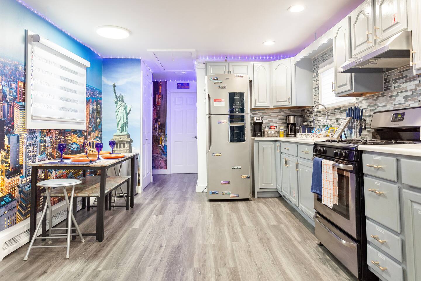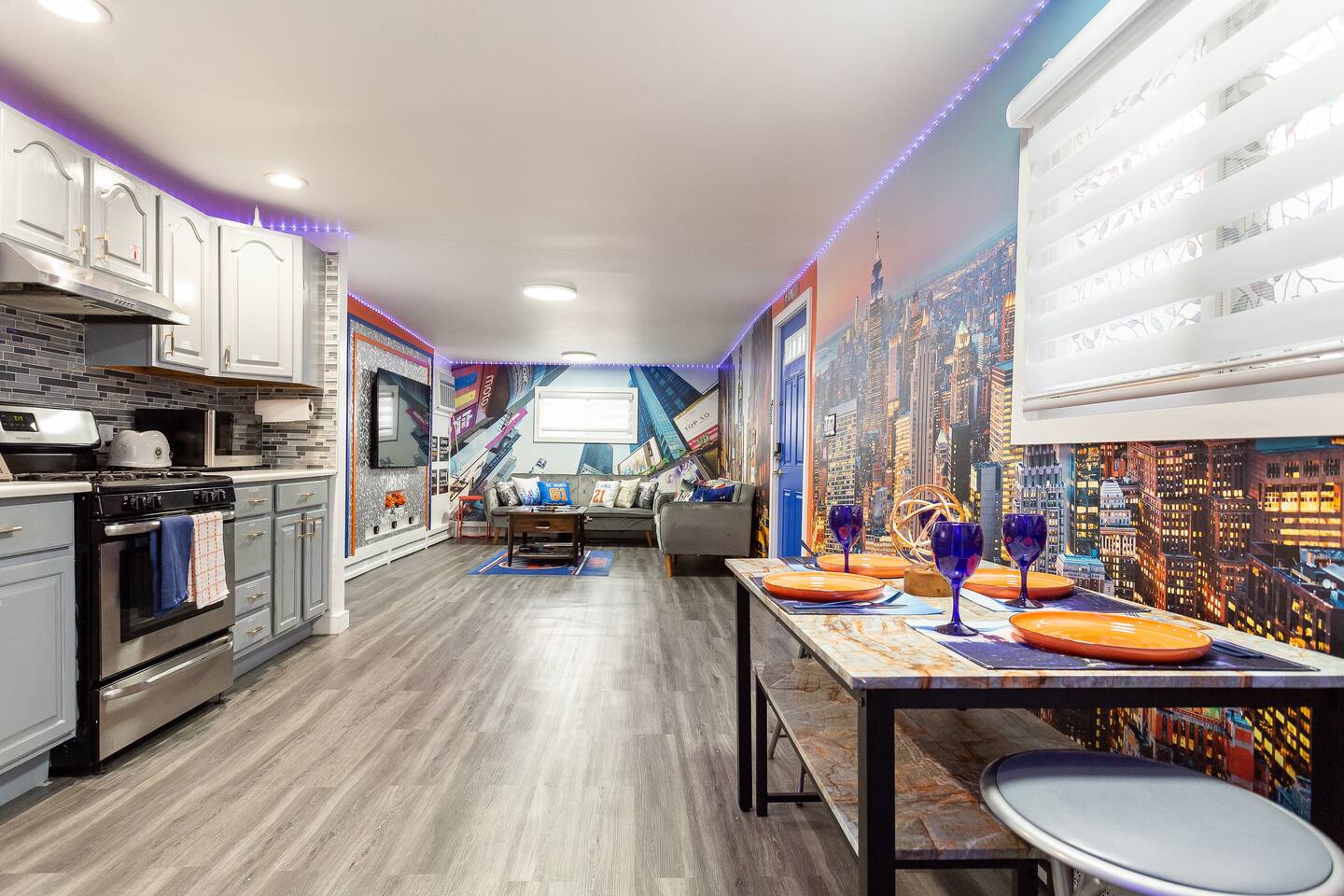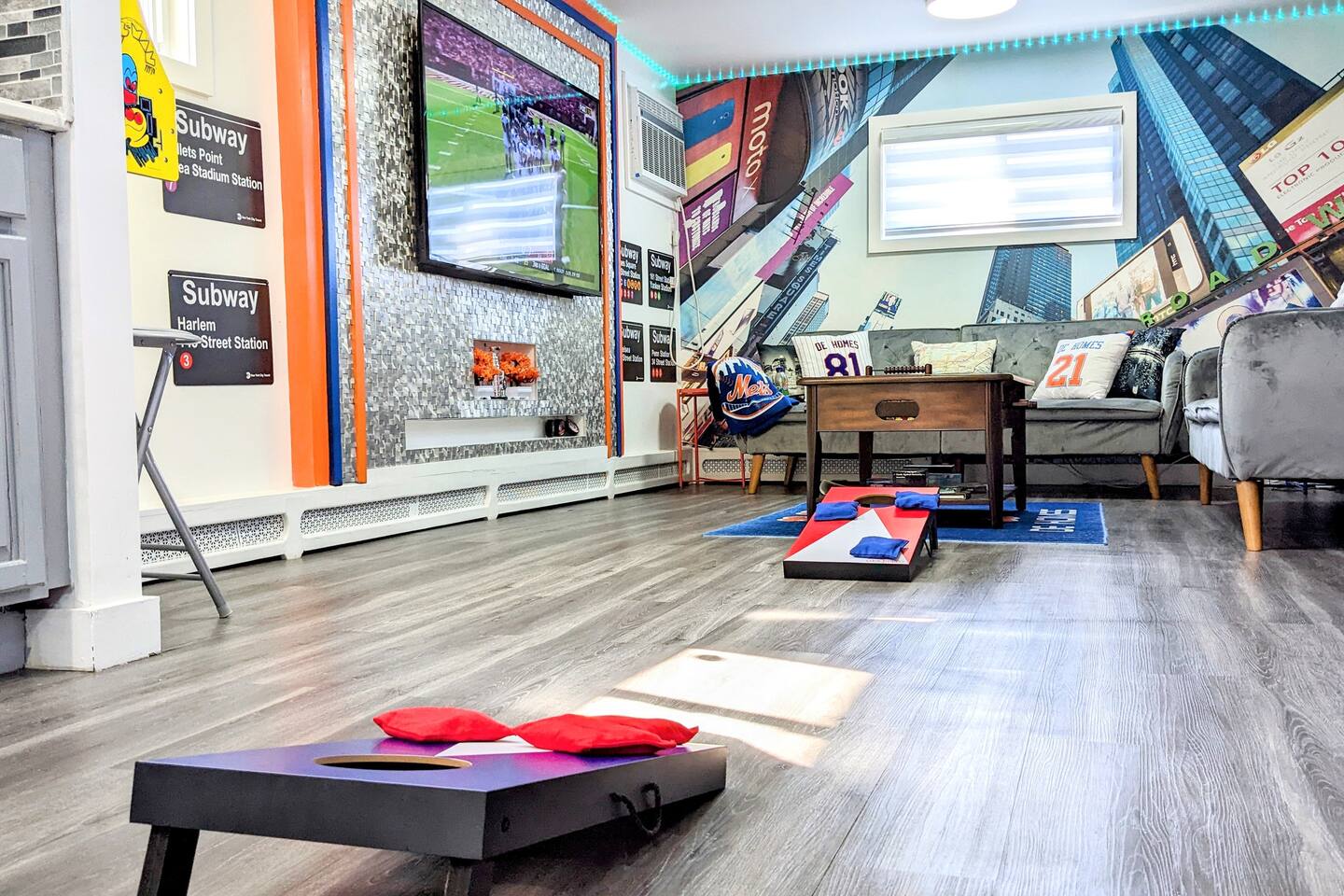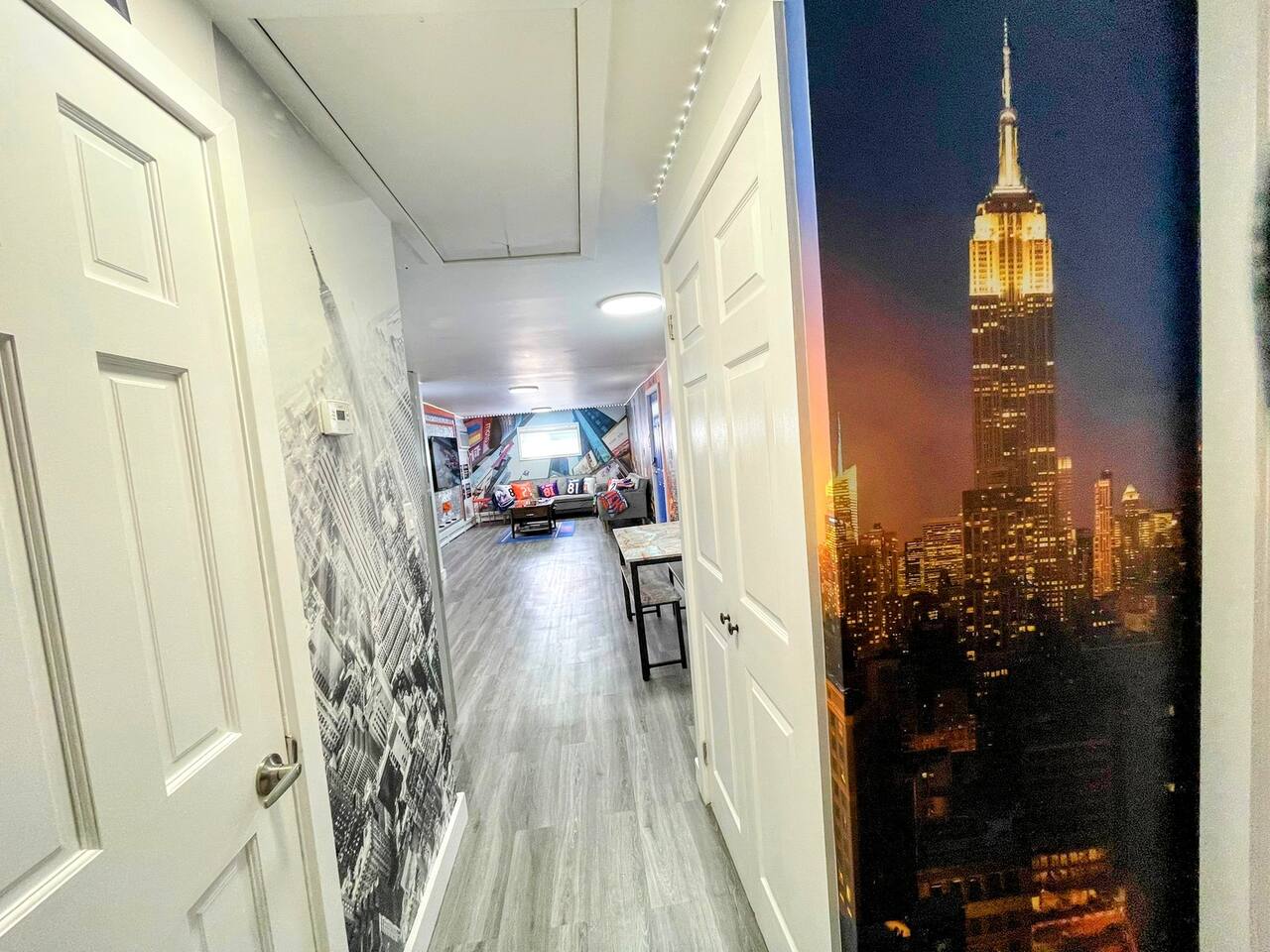 STAY. SOMEWHERE. DIFFERENT *This is an entire home! Owner does not live on premises! Complete privacy!* Experience the ultimate stay in this NYC Themed Smart Home! -5min walk to UBS Arena/Belmont -10min to JFK Airport -15min to LGA Airport -20min to Jones beach -10min to World Resort Casino -5min to Belmont Park Shopping Village Whether you're attending a game, concert, or exploring New York, this is the perfect spot. Labeled the cool, fun house...let us wow you and your family/friends!